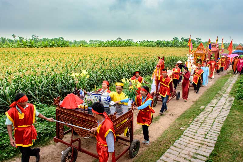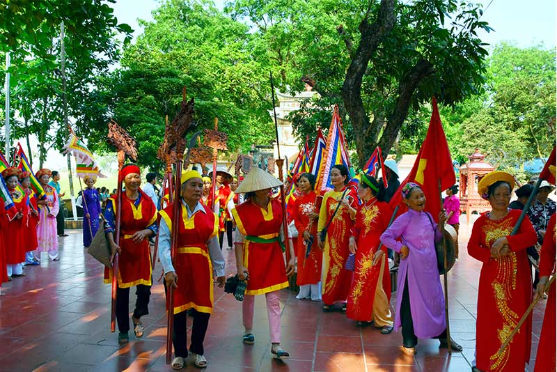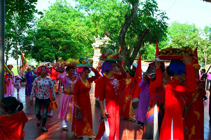 Các ngày 11,12,13, Ban tổ chức và nhà đền tiếp đón các đoàn khách cùng đội tế của các địa phương khác; các gia đình và dòng họ trong làng tự sắm lễ để dâng thánh. Sang ngày 14 thì tổ chức khai mạc lễ hội và rước quần thần. Các kiệu rước được trang hoàng lộng lẫy, uy nghi tiến hành rước vùng quanh làng. Buổi sáng ngày 16 tháng 4, tiến hành làm lễ tạ khóa.